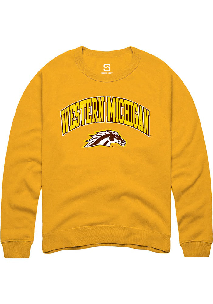 Western Michigan Broncos Mens Gold Arch Logo Long Sleeve Crew Sweatshirt