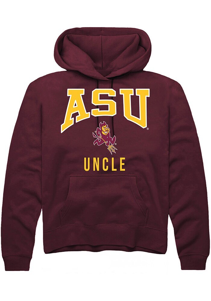 Put your Sun Devils spirit on display in this Arizona State Sun Devils Long Sleeve Hoodie! You'll be cozy on game day in this Arizona State Mens Maroon Uncle Hooded Sweatshirt. This Sun Devils Long Sleeve Hoodie features a digitally printed graphic. Wear your Arizona State Sun Devils spirit with pride in this great Mens Hooded Sweatshirt!