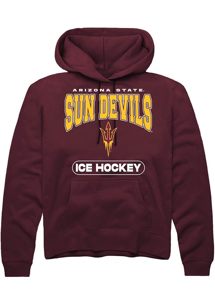 Put your Sun Devils spirit on display in this Arizona State Sun Devils Long Sleeve Hoodie! You'll be cozy on game day in this Arizona State Mens Maroon Ice Hockey Hooded Sweatshirt. This Sun Devils Long Sleeve Hoodie features a digitally printed graphic. Wear your Arizona State Sun Devils spirit with pride in this great Mens Hooded Sweatshirt!