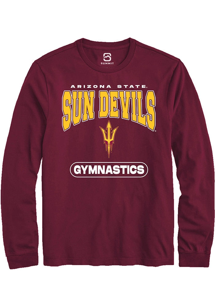 Show off your team pride in this Arizona State Sun Devils Maroon Gymnastics Long Sleeve T Shirt! This Arizona State Long Sleeve Tee features a digitally printed graphic. Make sure everyone knows you root for the Sun Devils with this Maroon Arizona State T Shirt. Go Devils!