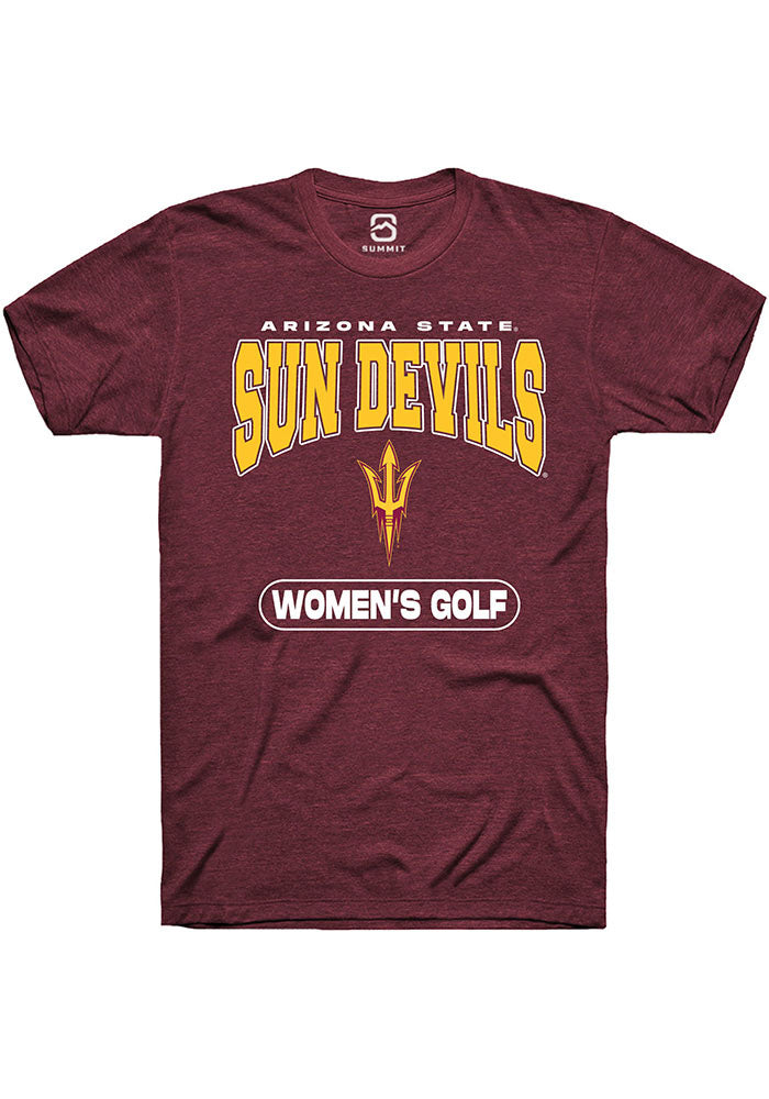Show off your team pride in this Arizona State Sun Devils Maroon Womens Golf Short Sleeve T Shirt! This Arizona State Short Sleeve Tee features a digitally printed graphic. Make sure everyone knows you root for the Sun Devils with this Maroon Arizona State T Shirt. Go Devils!