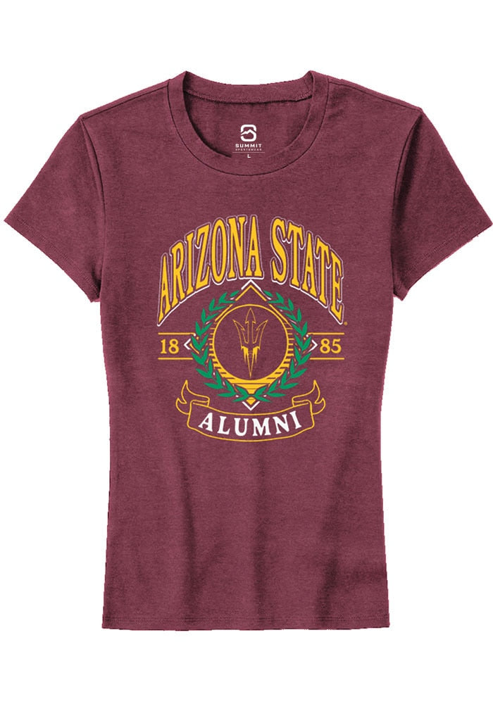 Arizona State Sun Devils Womens Maroon Alumni Wreath Short Sleeve T-Shirt