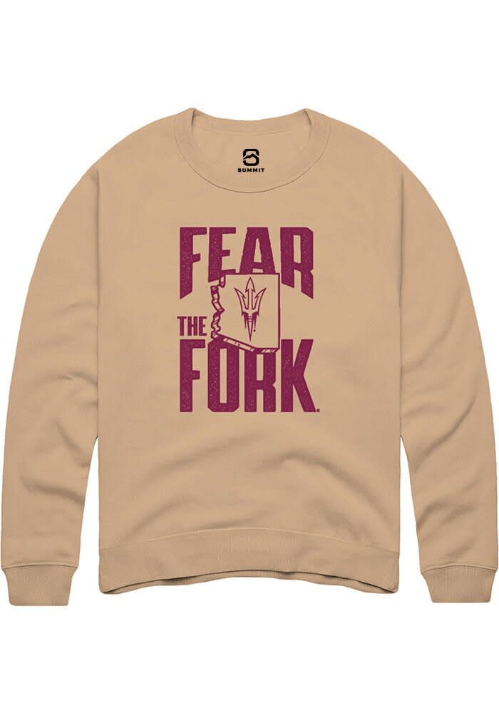 Arizona State Sun Devils Mens Tan Fear the Fork Long Sleeve Crew Sweatshirt