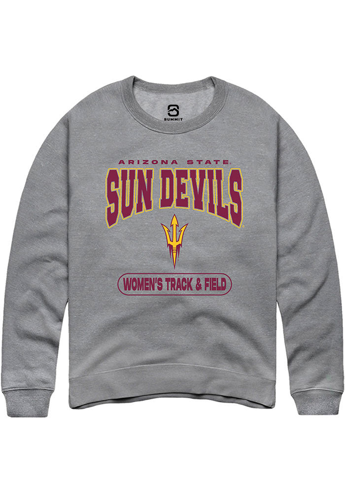 Head out in style with our Arizona State Sun Devils Grey Womens Track and Field Crew Sweatshirt! This Sun Devils Long Sleeve Crew Sweatshirt features a digitally printed graphic. You'll be warm, comfortable and stylish as you head to class, the game or just out on the town in this Arizona State Crew Sweatshirt.