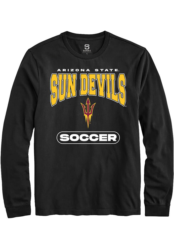 Show off your team pride in this Arizona State Sun Devils Black Soccer Long Sleeve T Shirt! This Arizona State Long Sleeve Tee features a digitally printed graphic. Make sure everyone knows you root for the Sun Devils with this Black Arizona State T Shirt. Go Devils!