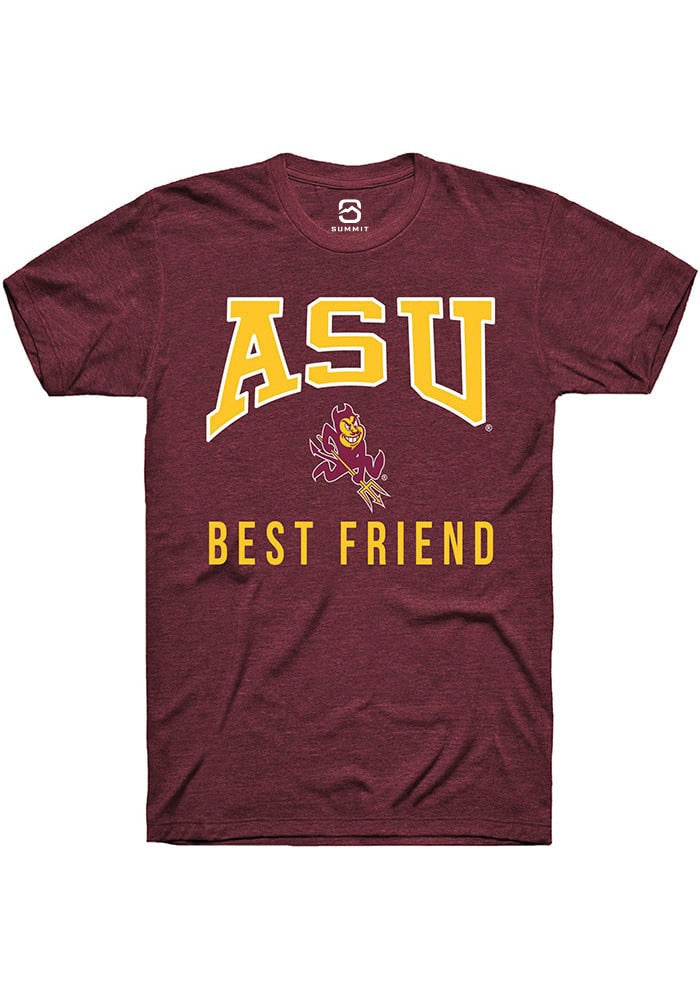Show off your team pride in this Arizona State Sun Devils Maroon Best Friend Short Sleeve T Shirt! This Arizona State Short Sleeve Tee features a digitally printed graphic. Make sure everyone knows you root for the Sun Devils with this Maroon Arizona State T Shirt. Go Devils!