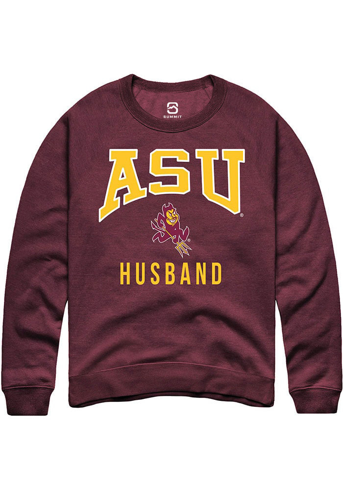 Head out in style with our Arizona State Sun Devils Maroon Husband Crew Sweatshirt! This Sun Devils Long Sleeve Crew Sweatshirt features a digitally printed graphic. You'll be warm, comfortable and stylish as you head to class, the game or just out on the town in this Arizona State Crew Sweatshirt.