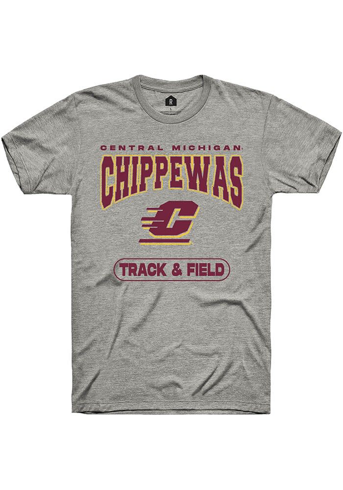Show off your team pride in this Central Michigan Chippewas Grey Track & Field Short Sleeve T Shirt! This CMU Chippewas Short Sleeve Tee features a digitally printed graphic. Make sure everyone knows you root for the Chippewas with this Grey CMU Chippewas T Shirt. Hail Chippewa!
