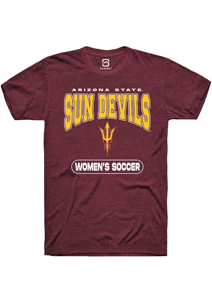 Show off your team pride in this Arizona State Sun Devils Maroon Womens Soccer Short Sleeve T Shirt! This Arizona State Short Sleeve Tee features a digitally printed graphic. Make sure everyone knows you root for the Sun Devils with this Maroon Arizona State T Shirt. Go Devils!