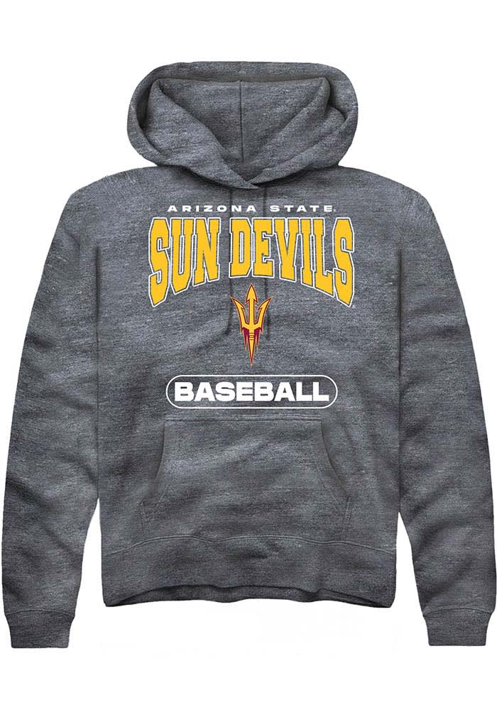 Put your Sun Devils spirit on display in this Arizona State Sun Devils Long Sleeve Hoodie! You'll be cozy on game day in this Arizona State Mens Charcoal Baseball Hooded Sweatshirt. This Sun Devils Long Sleeve Hoodie features a digitally printed graphic. Wear your Arizona State Sun Devils spirit with pride in this great Mens Hooded Sweatshirt!