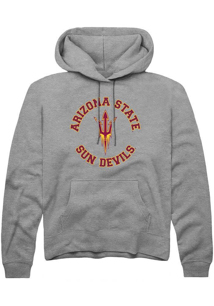 Put your Sun Devils spirit on display in this Arizona State Sun Devils Long Sleeve Hoodie! You'll be cozy on game day in this Arizona State Mens Grey Circle Arch Hooded Sweatshirt. This Sun Devils Long Sleeve Hoodie features a digitally printed graphic. Wear your Arizona State Sun Devils spirit with pride in this great Mens Hooded Sweatshirt!