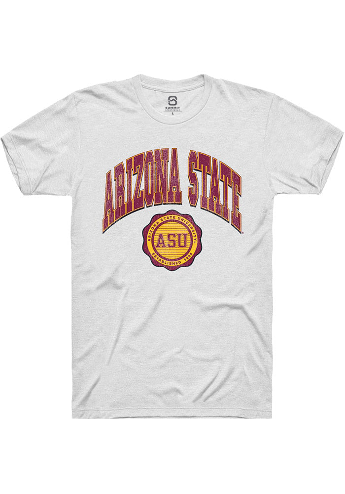 Arizona State Sun Devils White Arch Seal Short Sleeve T Shirt