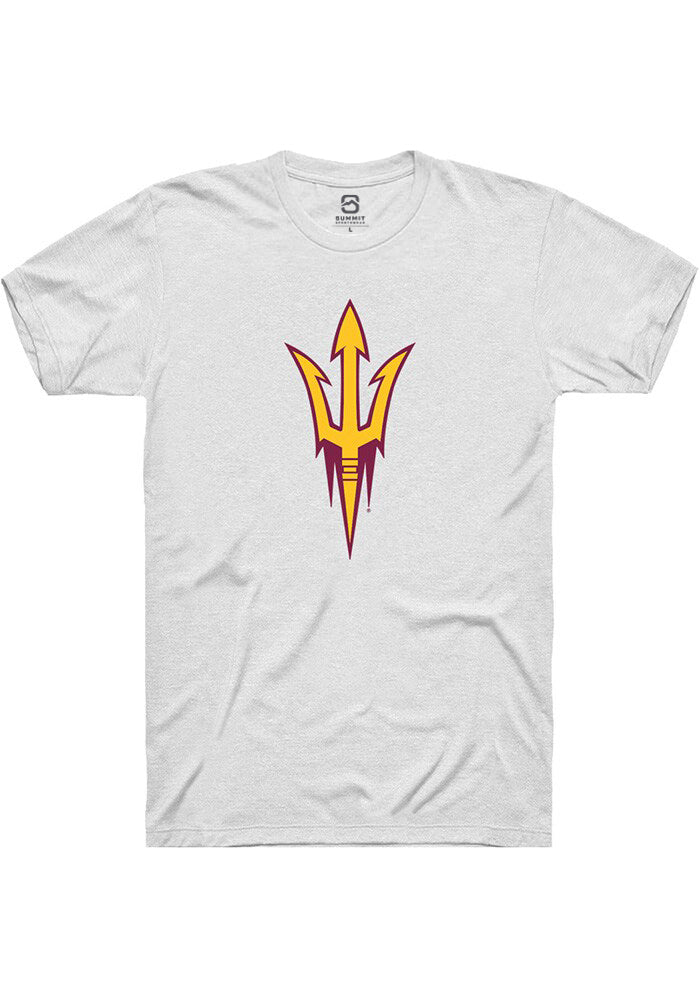 Show off your team pride in this Arizona State Sun Devils White Primary Logo Short Sleeve T Shirt! This Arizona State Short Sleeve Tee features a digitally printed graphic. Make sure everyone knows you root for the Sun Devils with this White Arizona State T Shirt. Go Devils!