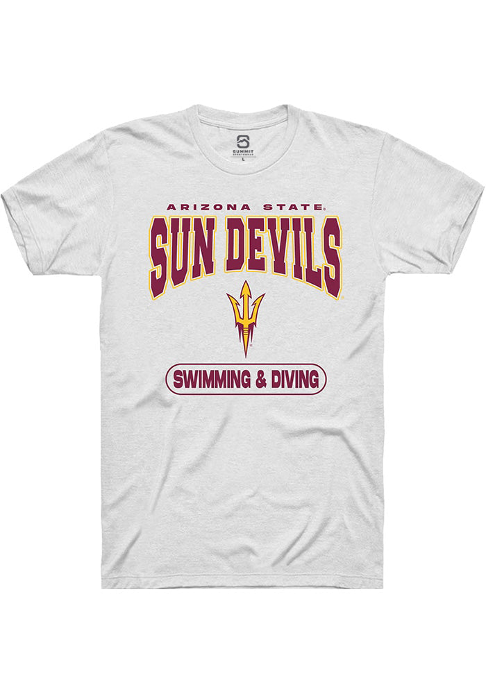 Show off your team pride in this Arizona State Sun Devils White Swimming and Diving Short Sleeve T Shirt! This Arizona State Short Sleeve Tee features a digitally printed graphic. Make sure everyone knows you root for the Sun Devils with this White Arizona State T Shirt. Go Devils!