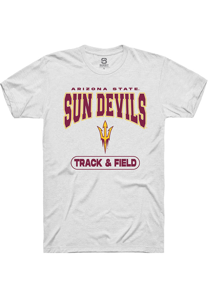 Show off your team pride in this Arizona State Sun Devils White Track and Field Short Sleeve T Shirt! This Arizona State Short Sleeve Tee features a digitally printed graphic. Make sure everyone knows you root for the Sun Devils with this White Arizona State T Shirt. Go Devils!
