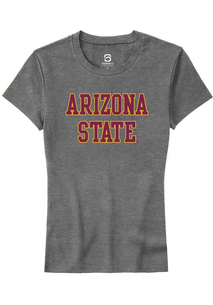 Arizona State Sun Devils Womens Grey Straight Block Short Sleeve T-Shirt