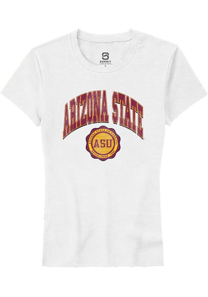 Arizona State Sun Devils Womens White Arch Seal Short Sleeve T-Shirt