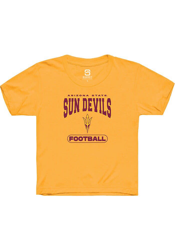 Your future Arizona State Sun Devils will be ready for the game with this Arizona State Sun Devils Youth Gold Short Sleeve Tee. This Football T-Shirt features a digitally printed graphic.