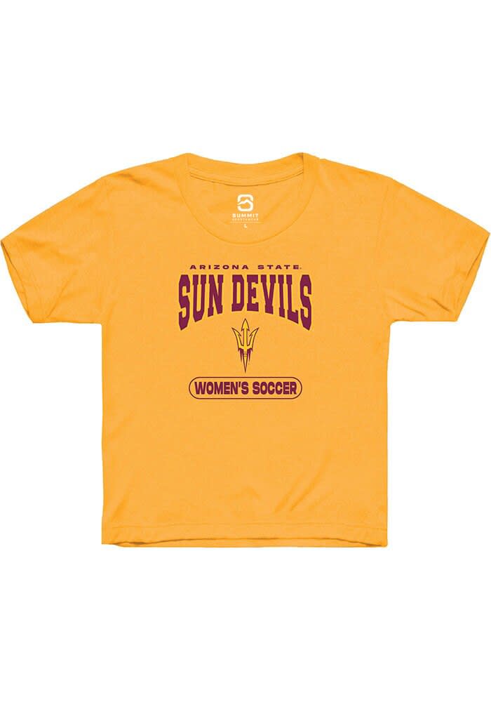 Your future Arizona State Sun Devils will be ready for the game with this Arizona State Sun Devils Youth Gold Short Sleeve Tee. This Womens Soccer T-Shirt features a digitally printed graphic.