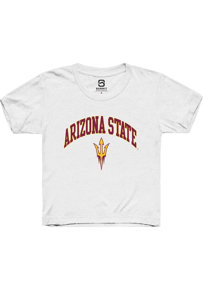 Your future Arizona State Sun Devils will be ready for the game with this Arizona State Sun Devils Youth White Short Sleeve Tee. This Arch Logo T-Shirt features a digitally printed graphic.