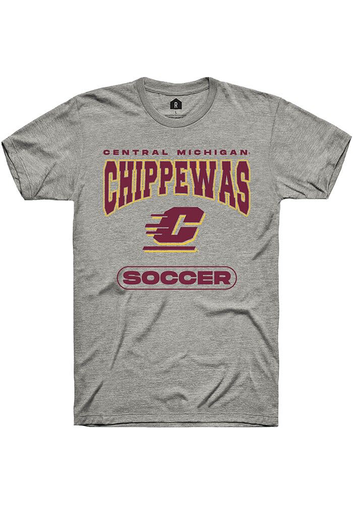 Show off your team pride in this Central Michigan Chippewas Grey Soccer Short Sleeve T Shirt! This CMU Chippewas Short Sleeve Tee features a digitally printed graphic. Make sure everyone knows you root for the Chippewas with this Grey CMU Chippewas T Shirt. Hail Chippewa!
