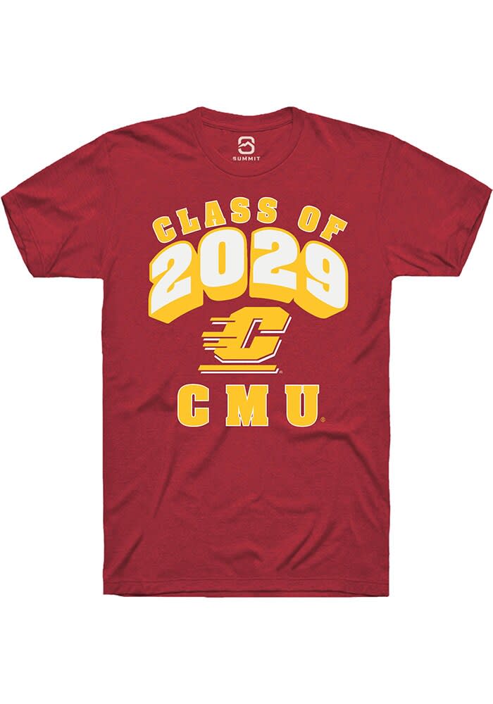 Central Michigan Chippewas Maroon Class of 2029 Short Sleeve T Shirt