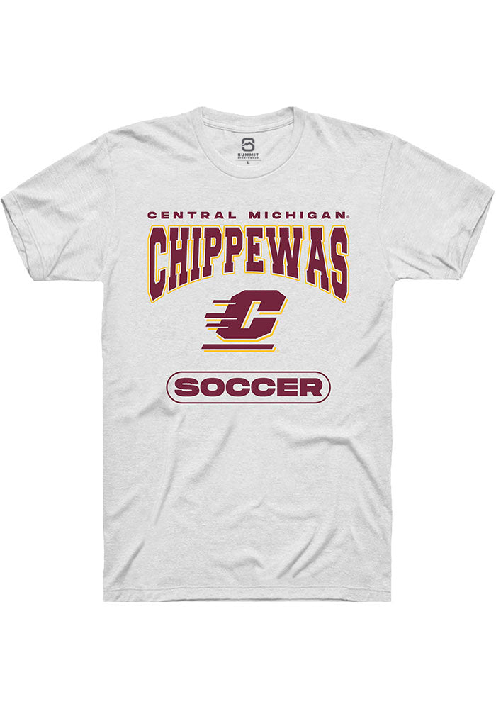 Show off your team pride in this Central Michigan Chippewas White Soccer Short Sleeve T Shirt! This CMU Chippewas Short Sleeve Tee features a digitally printed graphic. Make sure everyone knows you root for the Chippewas with this White CMU Chippewas T Shirt. Hail Chippewa!