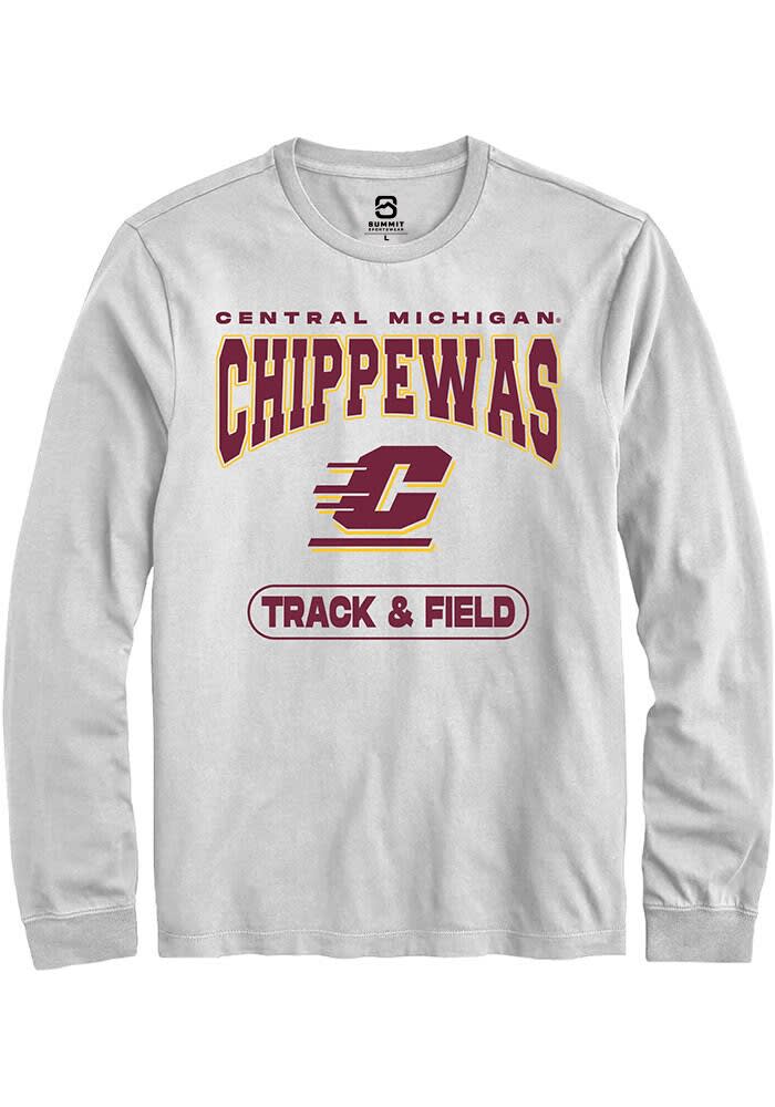 Show off your team pride in this Central Michigan Chippewas White Track & Field Long Sleeve T Shirt! This CMU Chippewas Long Sleeve Tee features a digitally printed graphic. Make sure everyone knows you root for the Chippewas with this White CMU Chippewas T Shirt. Hail Chippewa!