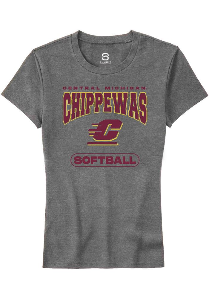 Central Michigan Chippewas Womens Grey Softball Short Sleeve T-Shirt