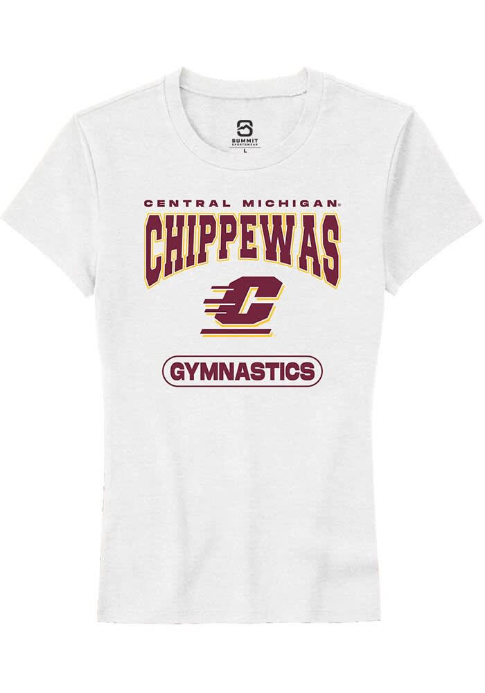 Central Michigan Chippewas Womens White Gymnastics Short Sleeve T-Shirt