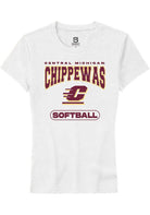 Central Michigan Chippewas Womens White Softball Short Sleeve T-Shirt