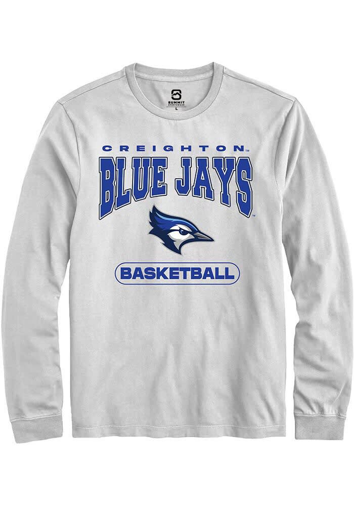 Show off your team pride in this Creighton Bluejays White Basketball Long Sleeve T Shirt! This Creighton Long Sleeve Tee features a digitally printed graphic. Make sure everyone knows you root for the Bluejays with this White Creighton T Shirt. Go Bluejays!!