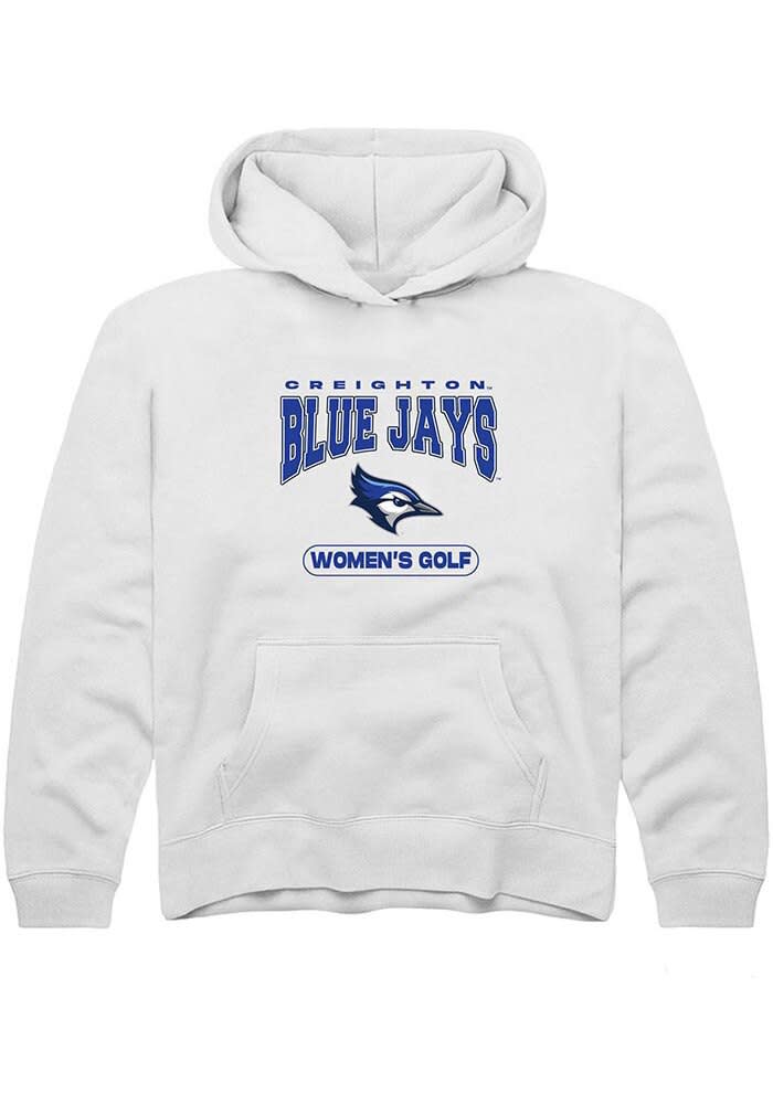 Those cold nights at the game won't keep your little Creighton fan from cheering on the team in Creighton Bluejays Long Sleeve Hoodie! Give them this Creighton Bluejays Youth White Women's Golf Hooded Sweatshirt to keep warm in the stands. This Bluejays Long Sleeve Hoodie features a digitally printed graphic.