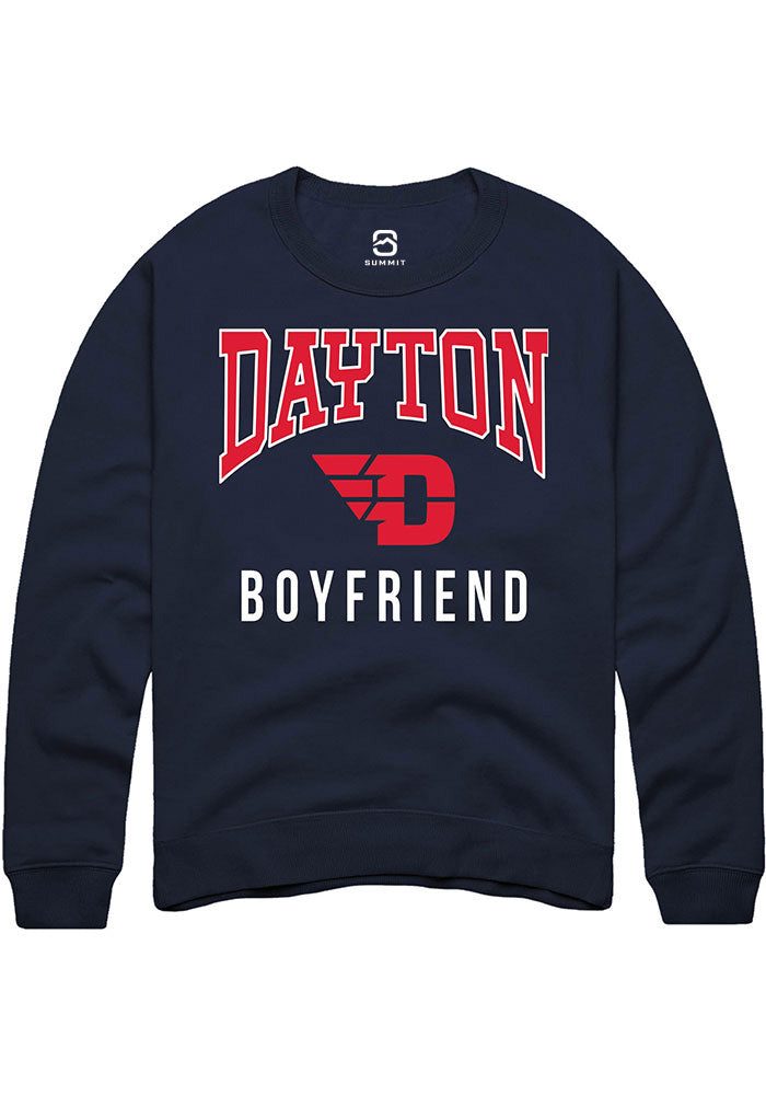 Dayton Flyers Mens Navy Blue Boyfriend Long Sleeve Crew Sweatshirt