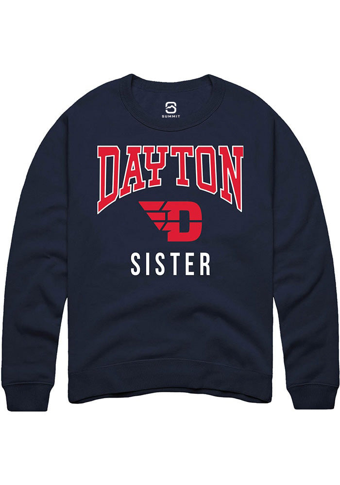 Head out in style with our Dayton Flyers Navy Blue Sister Crew Sweatshirt! This Flyers Long Sleeve Crew Sweatshirt features a team graphic. You'll be warm, comfortable and stylish as you head to class, the game or just out on the town in this Dayton Crew Sweatshirt.