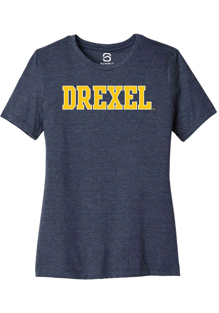 Drexel Dragons Womens Navy Blue Straight Block Short Sleeve T-Shirt