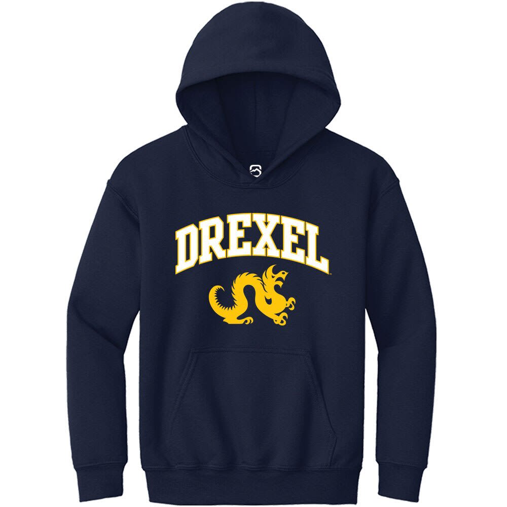 Those cold nights at the game won't keep your little Drexel fan from cheering on the team in Drexel Dragons Long Sleeve Hoodie! Give them this Drexel Dragons Youth Navy Blue Arch Logo Hooded Sweatshirt to keep warm in the stands. This Dragons Long Sleeve Hoodie features a team logo.