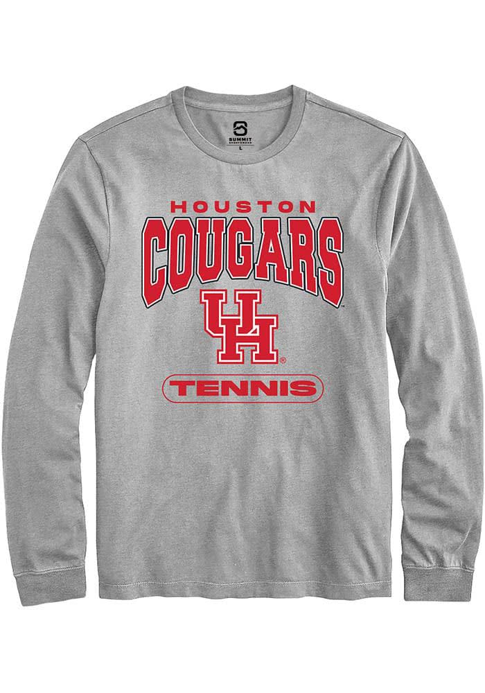 Show off your team pride in this Houston Cougars Grey Tennis Long Sleeve T Shirt! This Houston Long Sleeve Tee features a team graphic. Make sure everyone knows you root for the Cougars with this Grey Houston T Shirt. Go Cougars!