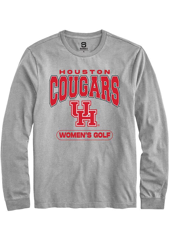 Show off your team pride in this Houston Cougars Grey Women's Golf Long Sleeve T Shirt! This Houston Long Sleeve Tee features a team graphic. Make sure everyone knows you root for the Cougars with this Grey Houston T Shirt. Go Cougars!