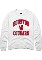 Houston Cougars Mens White No 1 Long Sleeve Crew Sweatshirt