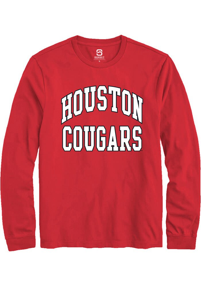 Show off your team pride in this Houston Cougars Red Arch Stack Long Sleeve T Shirt! This Houston Long Sleeve Tee features a team graphic. Make sure everyone knows you root for the Cougars with this Red Houston T Shirt. Go Cougars!