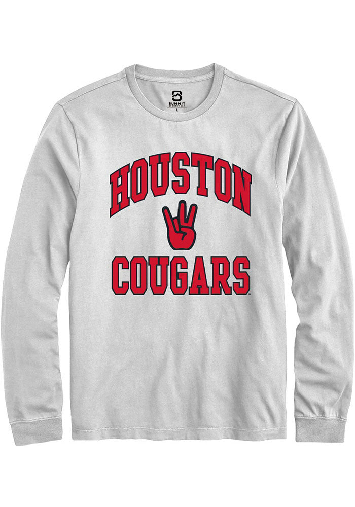 Show off your team pride in this Houston Cougars White No 1 Long Sleeve T Shirt! This Houston Long Sleeve Tee features a team graphic. Make sure everyone knows you root for the Cougars with this White Houston T Shirt. Go Cougars!