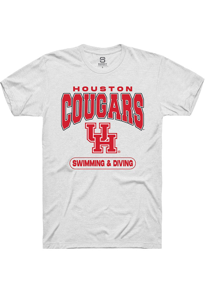 Show off your team pride in this Houston Cougars White Swimming & Diving Short Sleeve T Shirt! This Houston Short Sleeve Tee features a team graphic. Make sure everyone knows you root for the Cougars with this White Houston T Shirt. Go Cougars!