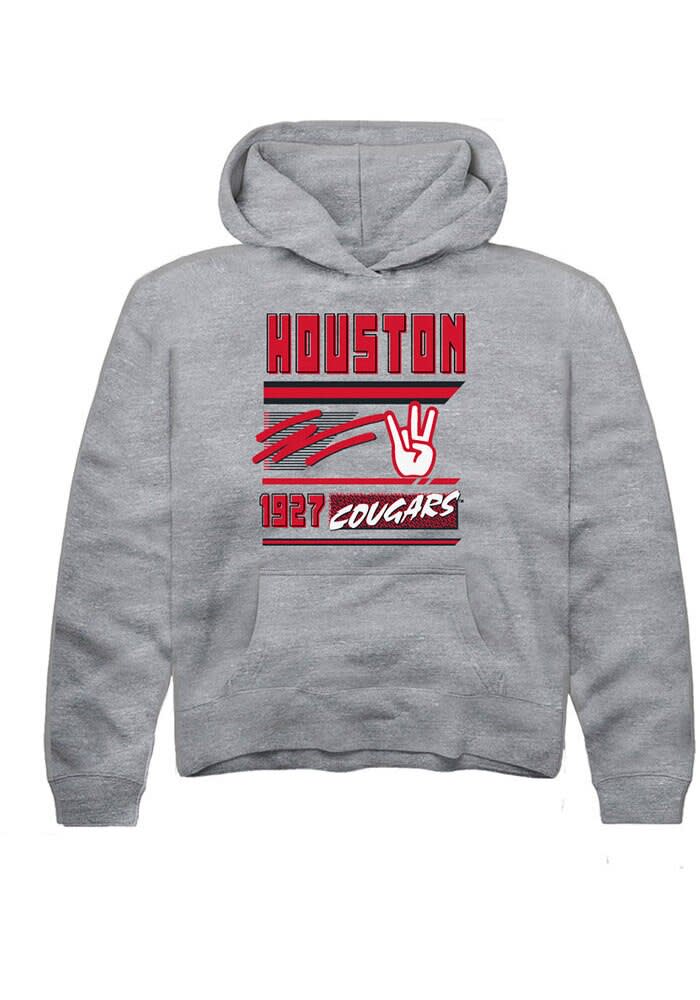 Those cold nights at the game won't keep your little Houston fan from cheering on the team in Houston Cougars Long Sleeve Hoodie! Give them this Houston Cougars Youth Grey Retro Hooded Sweatshirt to keep warm in the stands. This Cougars Long Sleeve Hoodie features a team graphic.