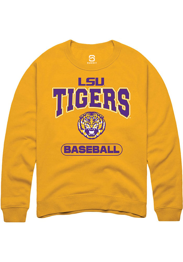 LSU Tigers Mens Gold Baseball Long Sleeve Crew Sweatshirt