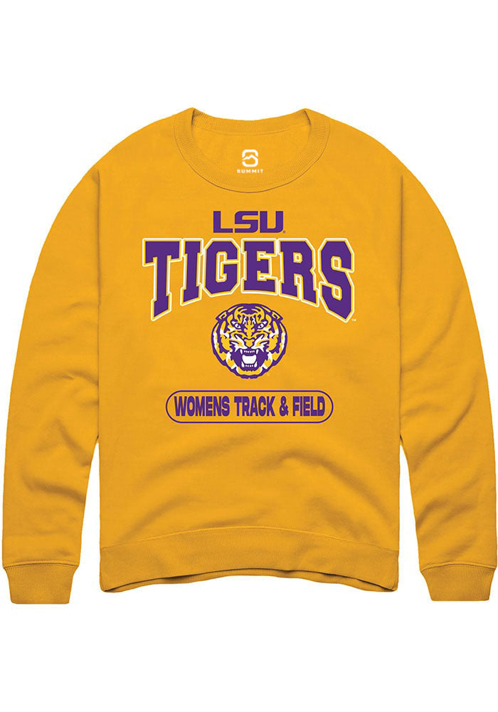 Head out in style with our LSU Tigers Gold Womens Track & Field Crew Sweatshirt! This Tigers Long Sleeve Crew Sweatshirt features a digitally printed graphic. You'll be warm, comfortable and stylish as you head to class, the game or just out on the town in this LSU Crew Sweatshirt.