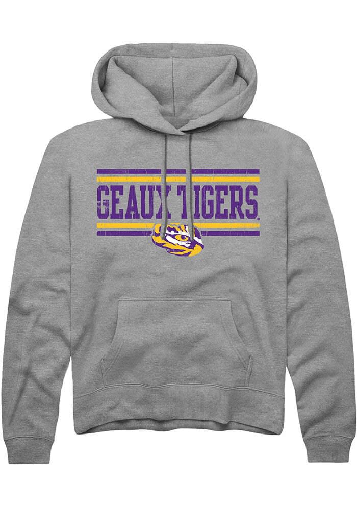 LSU Tigers Mens Grey Chant Bars Long Sleeve Hoodie