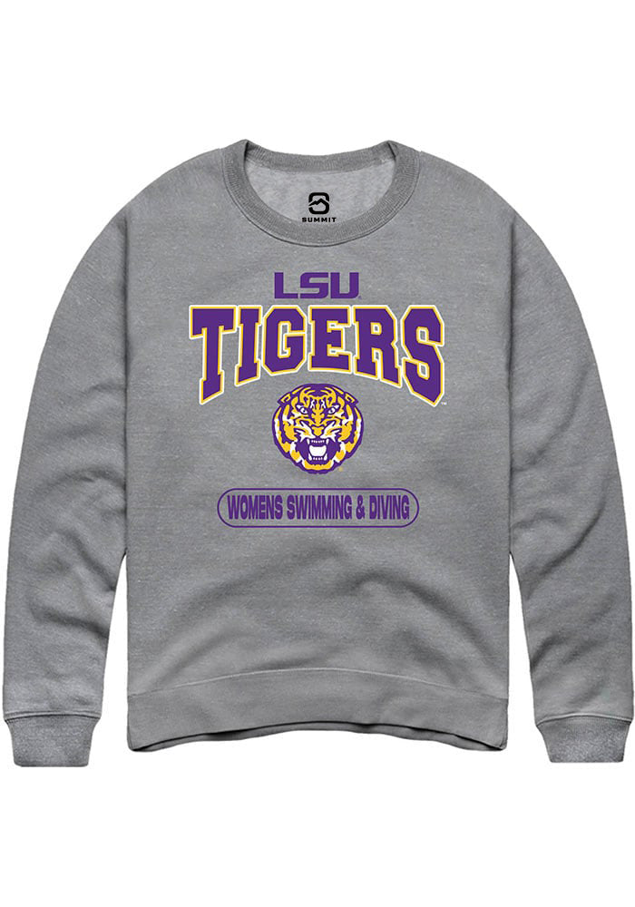 LSU Tigers Mens Grey Womens Swimming & Diving Long Sleeve Crew Sweatshirt