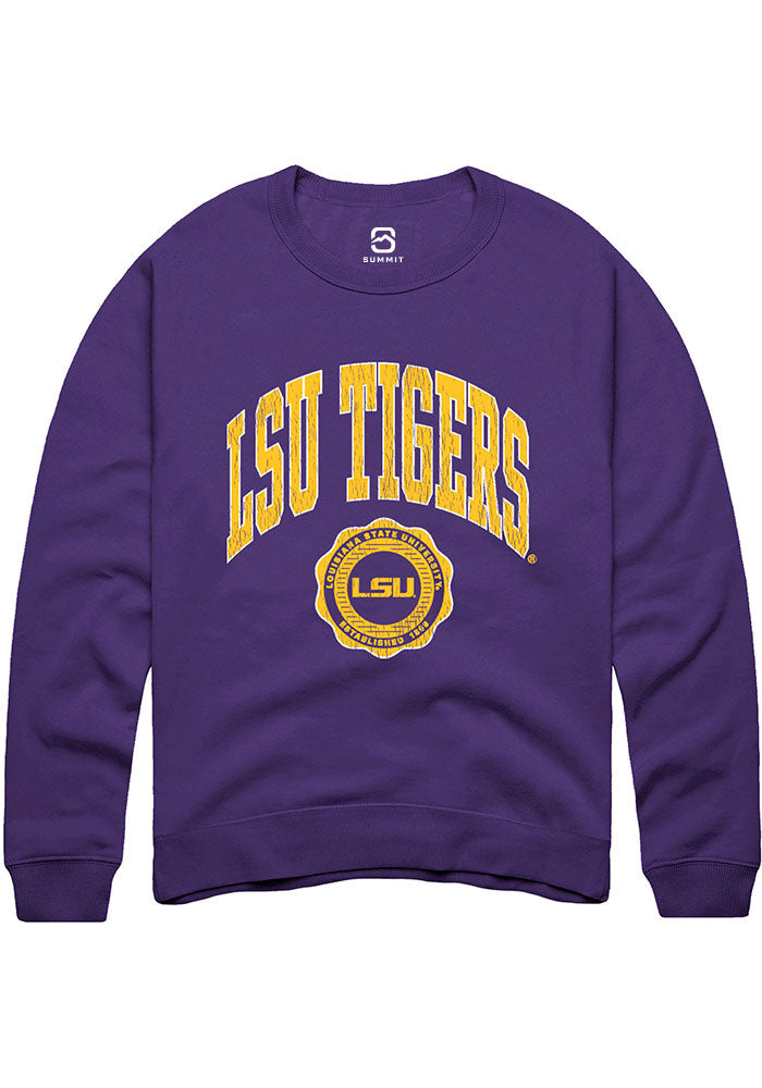 LSU Tigers Mens Purple Arch Seal Long Sleeve Crew Sweatshirt