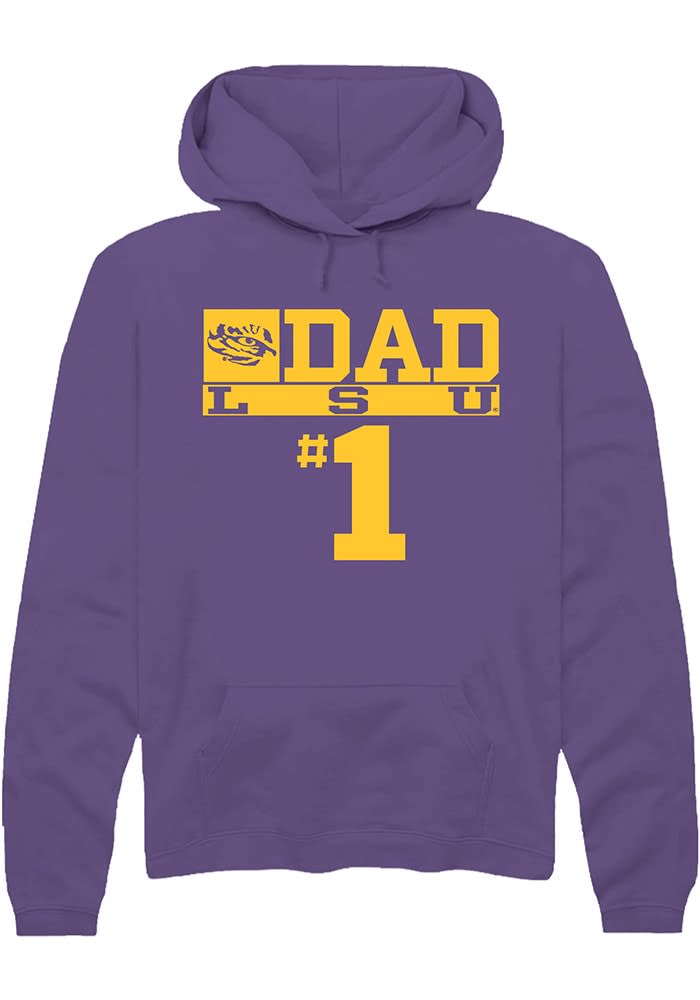 Put your Tigers spirit on display in this LSU Tigers Long Sleeve Hoodie! You'll be cozy on game day in this LSU Mens Purple No 1 Dad Hooded Sweatshirt. This Tigers Long Sleeve Hoodie features a team graphic. Wear your LSU Tigers spirit with pride in this great Mens Hooded Sweatshirt!